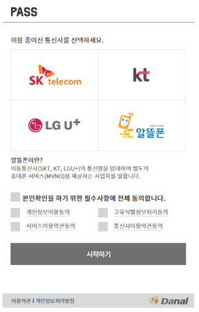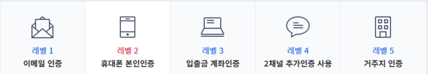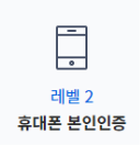 각 통신사 별로 선택 후 본인확인 필수사항 동의에 모두 다 체크하여 시작하기를 누르면 진행된다. 인증을 다 맞쳤다면 위의 제공했던 보안박스 안에 보안레벨 1과 레벨 2에 V자로 체크표시가 생길것이다. 2단계까지 마쳤다는 것이다.