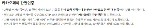 보안단계는 4단계는 카카오페이 간편인증을 카카오톡에서 진행하여한다. 카카오톡 내부에서 카카오페이 간편인증을 찾아 진행하여야 하는데 절차는 다음 같다.